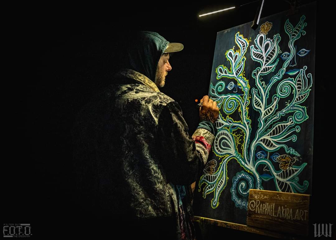 Hailing from Montreal, now settled in Nelson BC, Akiba paints intricate garden-scapes with depth and intuition. A seasoned creator, self taught artist and live painter at Shambhala music festival, Raphael turns doodles into vibrant kaleidoscopes of color. His work is psychedelic and flowing, blurring the lines between imagination and reality. One usually discovers unique, immersive thickets in Akiba's creations, teeming with fauna, flora and magical beings.
